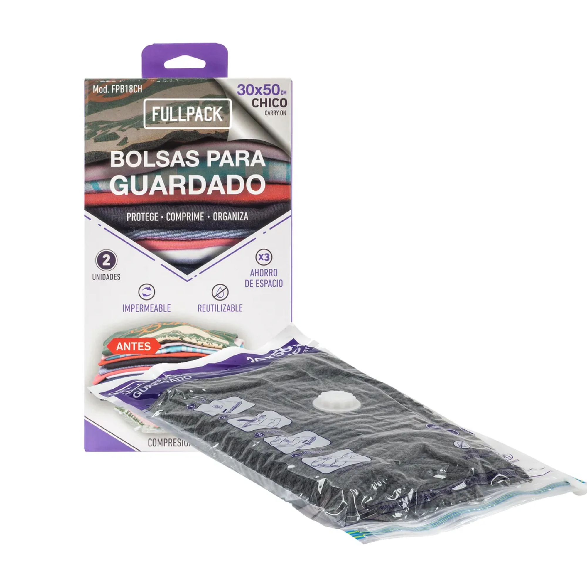 Las bolsas de guardado al vacío FULL PACK son la solución práctica y eficiente para organizar y proteger tu ropa y textiles. El set incluye 2 bolsas de 30 cm x 50 cm, diseñadas con cierre hermético reforzado y pico para extracción de aire, permitiendo reducir el volumen de forma simple y rápida.