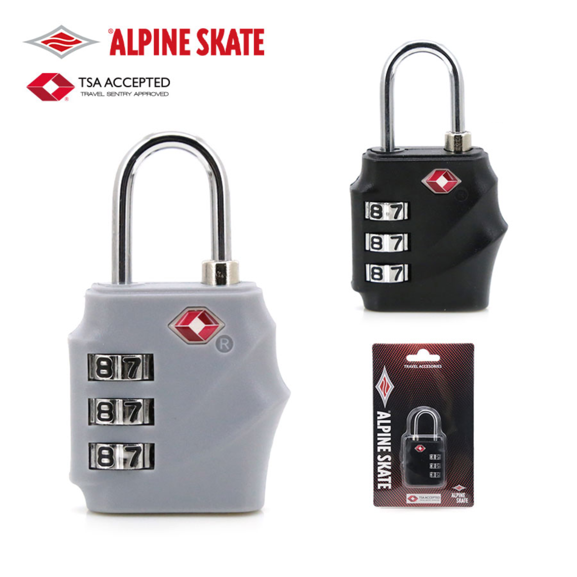 Candado Alpine Skate TSA de 3 combinaciones, ideal para viajar seguro.