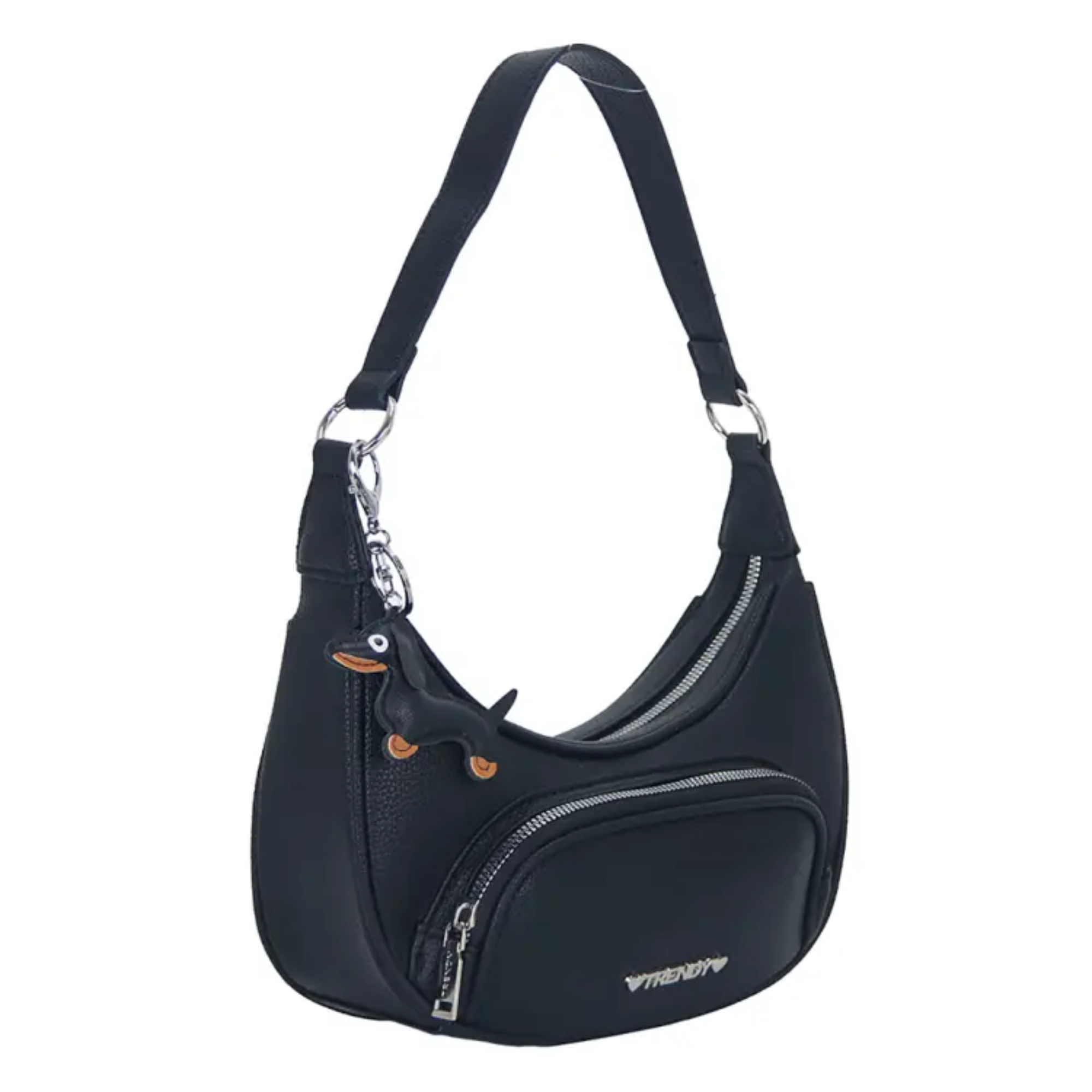 Góndola confeccionada en eco cuero, con un diseño moderno y funcional. Incorpora bolsillo al frente para un acceso rápido, correa corta regulable que se adapta cómodamente al uso diario y llavero incluido para mayor practicidad. Ideal para llevar lo esencial con estilo en cualquier ocasión.