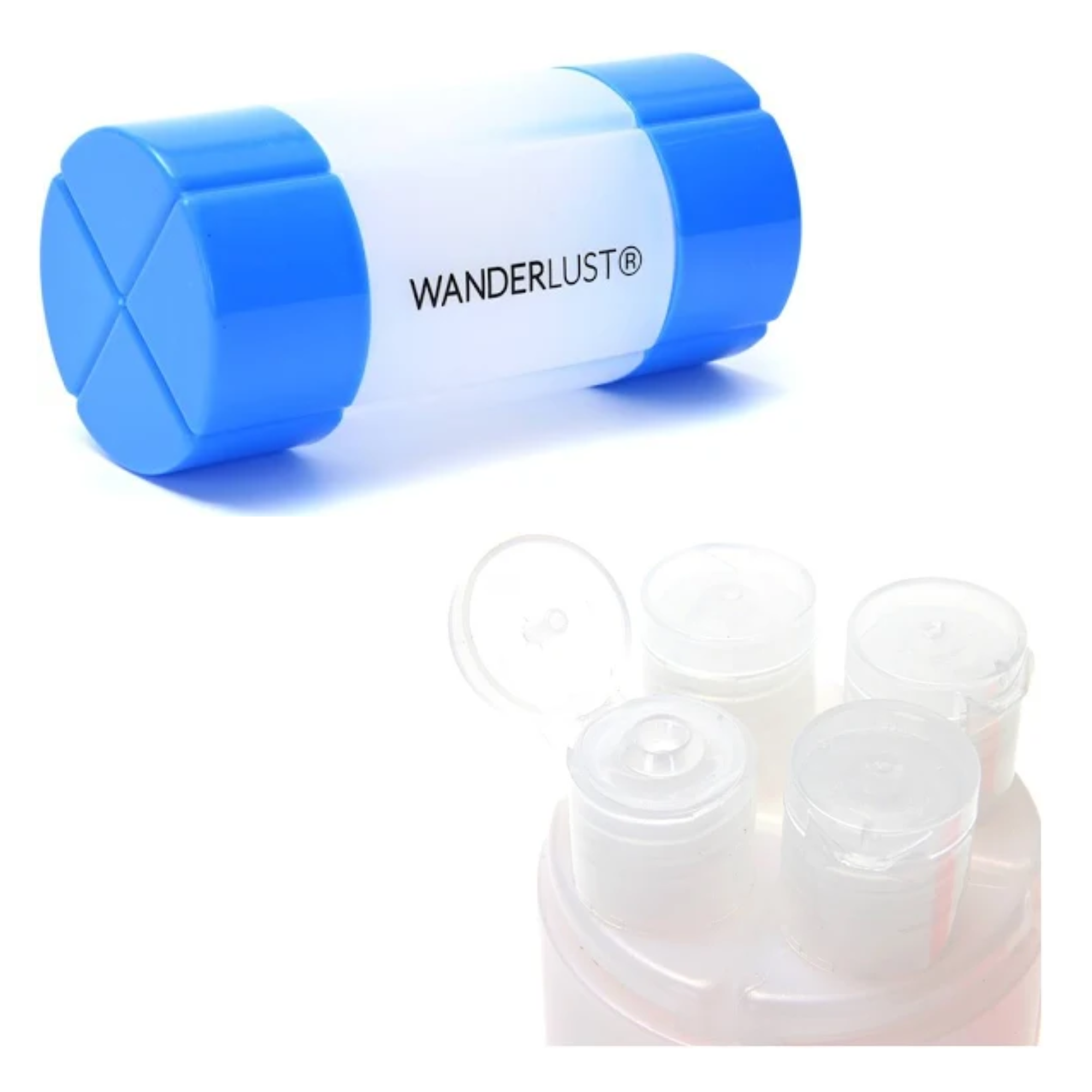 Viajá cómodo y organizado con el kit de envases de viaje Wanderlust. Incluye frascos de 60 ml cada uno, ideales para llevar tus productos de higiene o cosmética en tamaño aprobado para cabina. Su diseño con tapa encastrable permite mantenerlos todos juntos, evitando pérdidas y ocupando menos espacio en tu valija o mochila. Práctico, compacto y reutilizable, es el aliado perfecto para viajes cortos o largos.