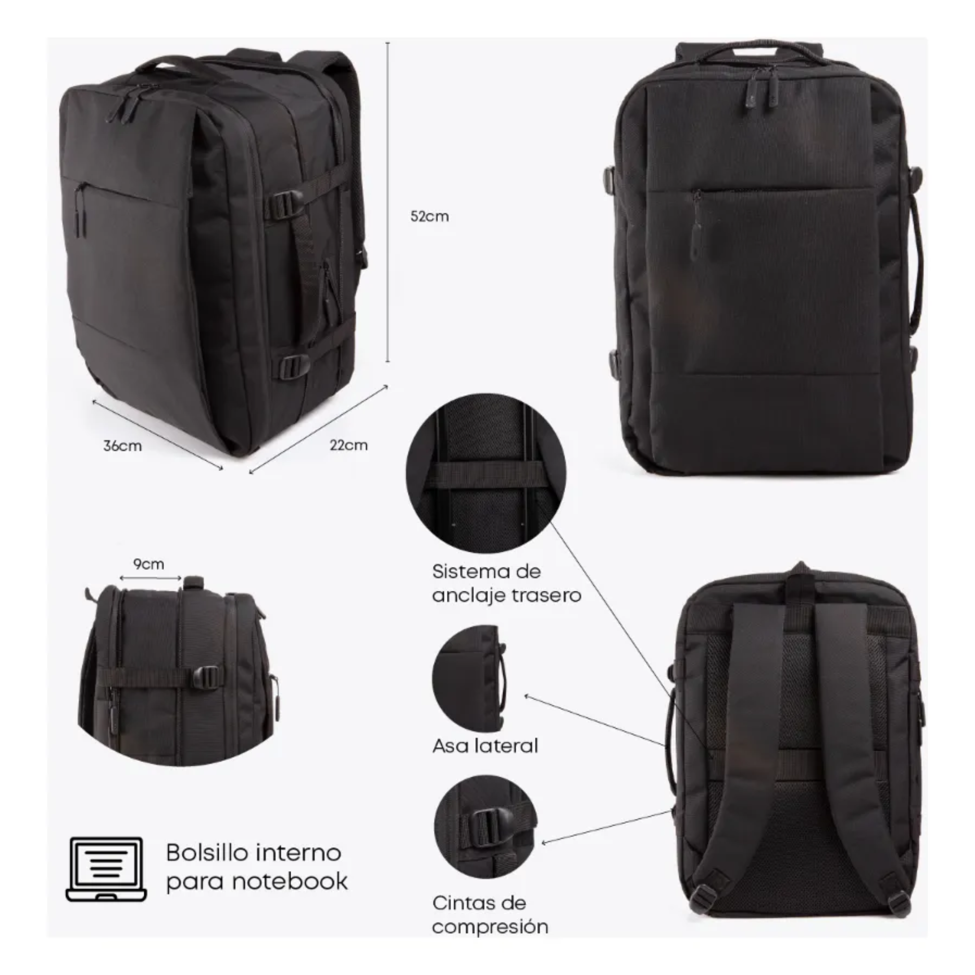 Incluye apertura completa tipo valija para un guardado práctico, espalda anti-transpirante que brinda mayor confort y varios bolsillos internos y externos para mantener todo organizado. Perfecta para llevar como equipaje de mano, uso diario o viajes cortos.