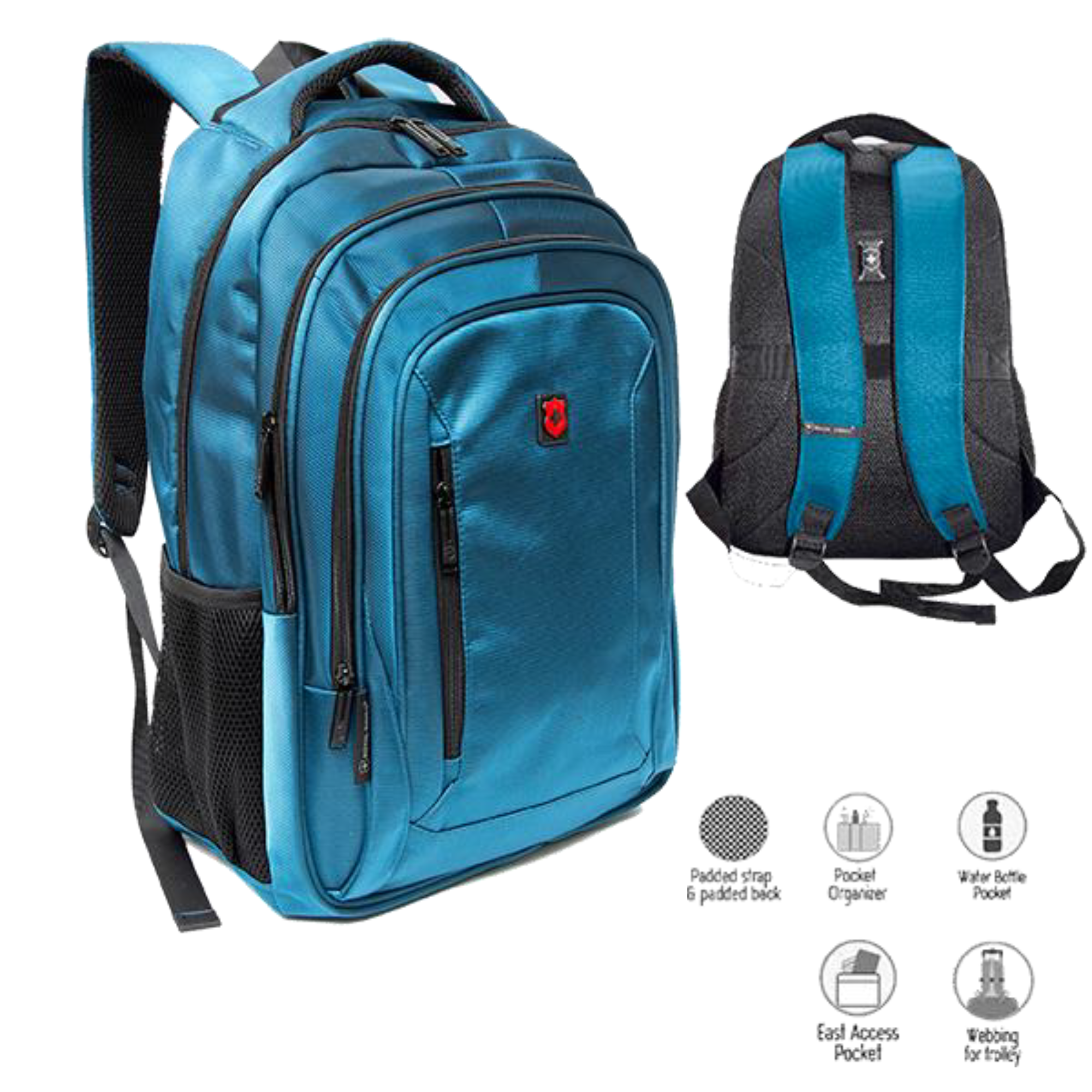 Mochila Royal Swiss confeccionada en 100% poliéster, resistente e impermeable. Cuenta con 31 litros de capacidad, porta laptop, espalda anti transpirante para mayor comodidad y faja trasera para enganchar en carry on. Ideal para viajes, trabajo o uso diario.
