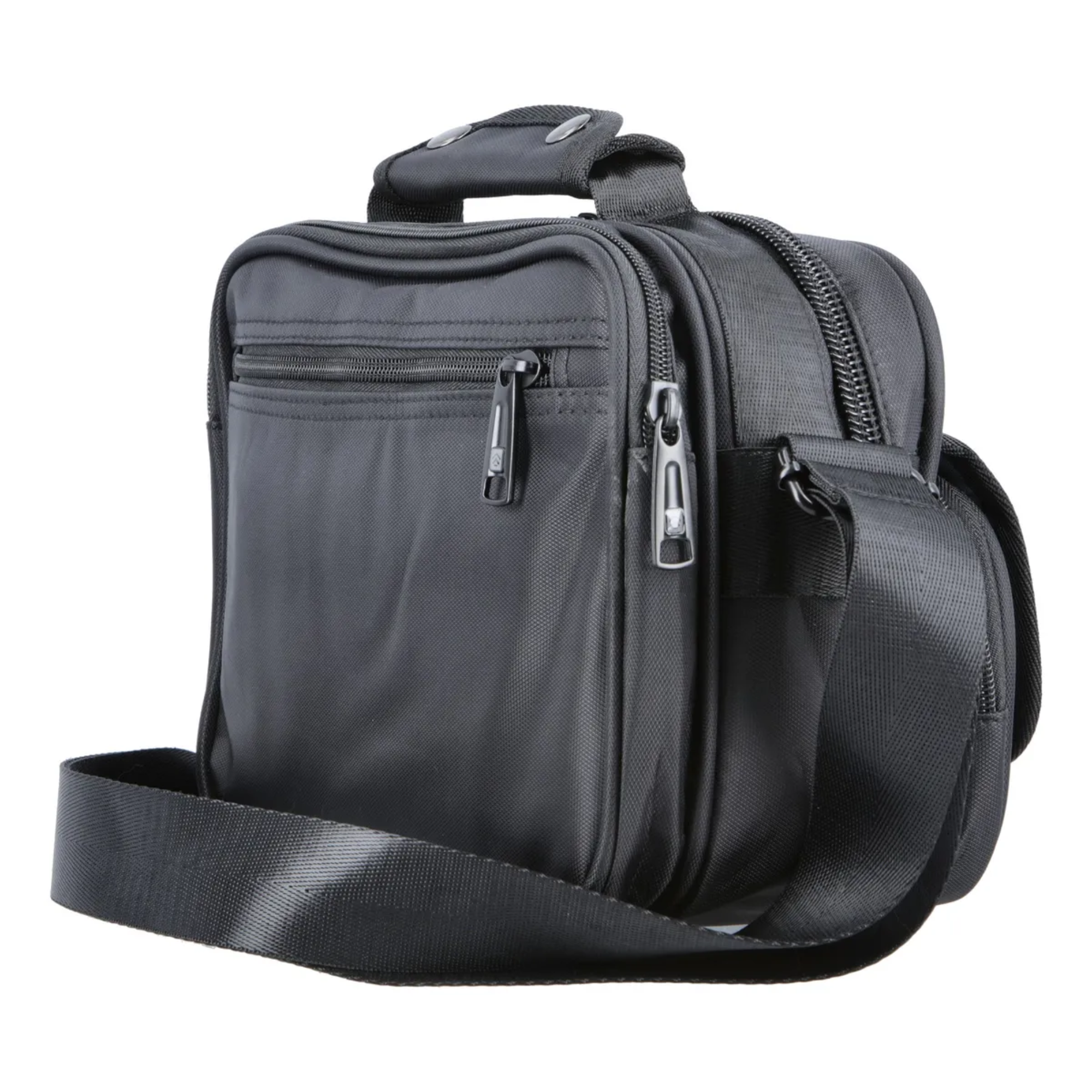 Su diseño incorpora dos divisiones, ideales para organizar tus pertenencias de manera práctica. Además, posee un bolsillo frontal con solapa, perfecto para acceder rápidamente a los objetos de uso frecuente, y un manijón superior que facilita su traslado en la mano.