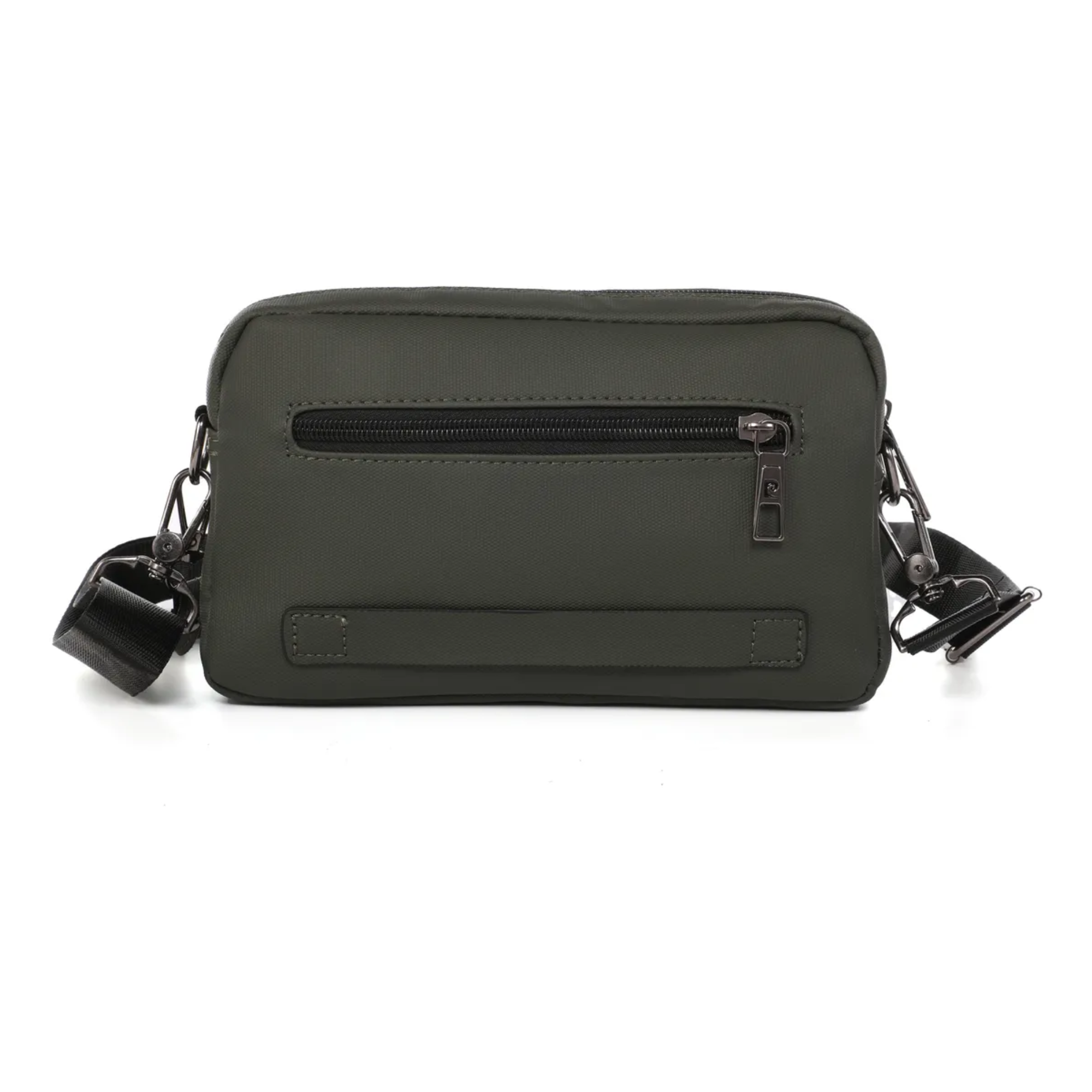 Cuenta con un compartimento principal con cierre, que brinda mayor seguridad para tus pertenencias. Además, incorpora dos bolsillos delanteros con tapa, ideales para organizar objetos de acceso rápido como el celular, llaves o tarjetas.