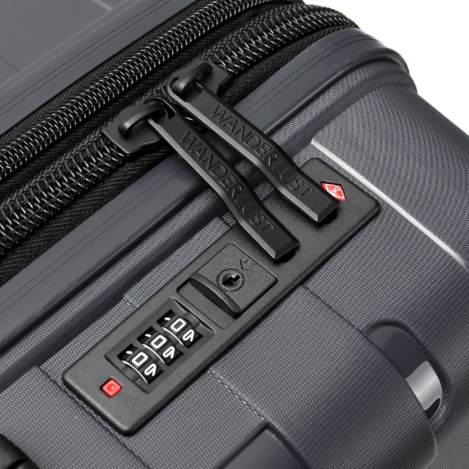 Valija WANDERLUST carry on de polipropileno, con expansión, cuatro ruedas, carro regulable en altura y candado con combinación.