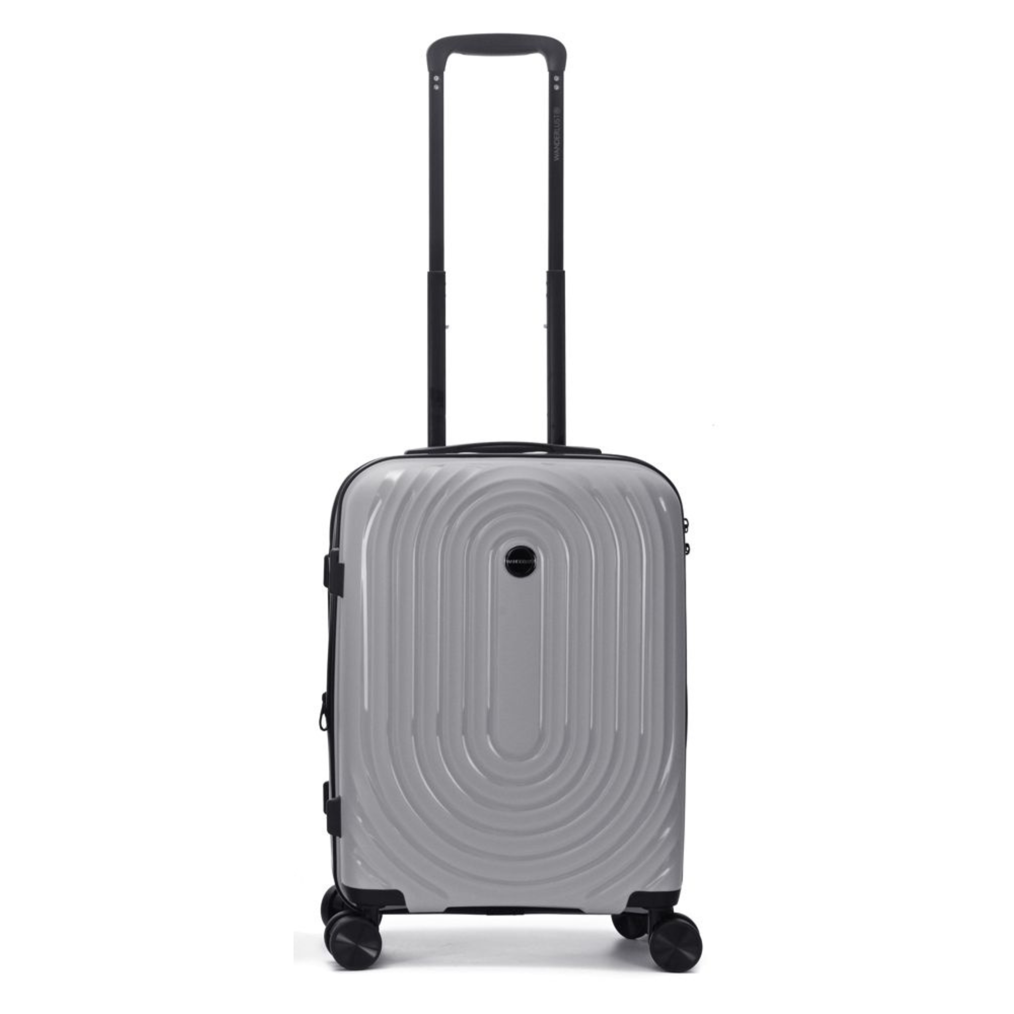 Valija carry on WANDERLUST de polipropileno, con expansión, candado de combinación de 3 dígitos y carro de aluminio regulable. Equipada con cuatro ruedas dobles giratorias con recubrimiento de goma para un desplazamiento suave y estable.
