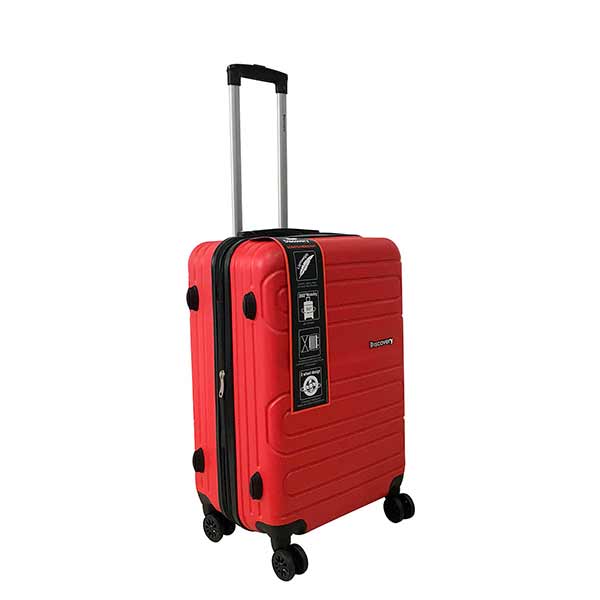 Valija mediana DISCOVERY, ultra liviana y resistente, fabricada en 100% ABS con candado de combinación, separador interior y cuatro ruedas dobles para un desplazamiento suave.